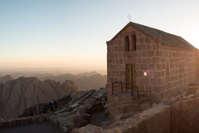 На рассвете, когда ночная темнота сменяется голубыми и розовыми оттенками, а первые лучи солнца касаются острых вершин, перед вами открываются захватывающие виды на глубокие ущелья и обрывистые склоны. На северной стороне горы находятся храм пророка Илии с колодцем и часовня Богородицы, которые привлекают православных паломников. У подножия горы возвышается монастырь Святой Екатерины, который словно охраняет этот священный уголок.